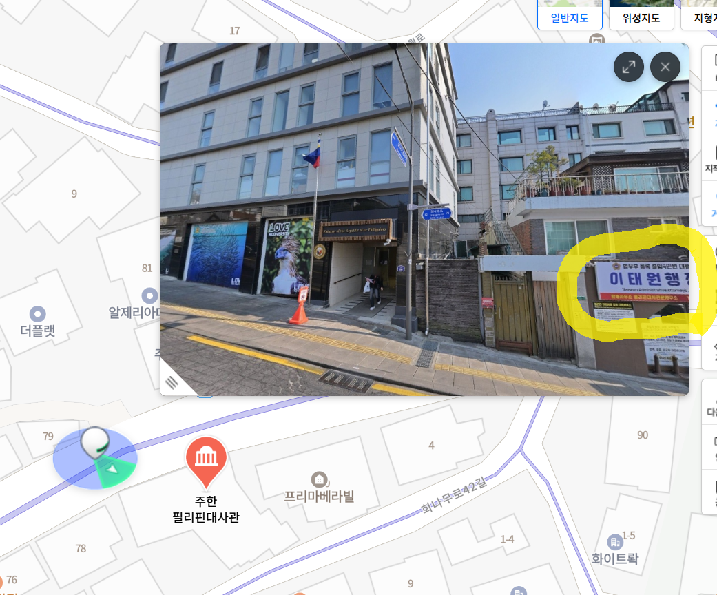필리핀 대사관 건물 바로 아래에