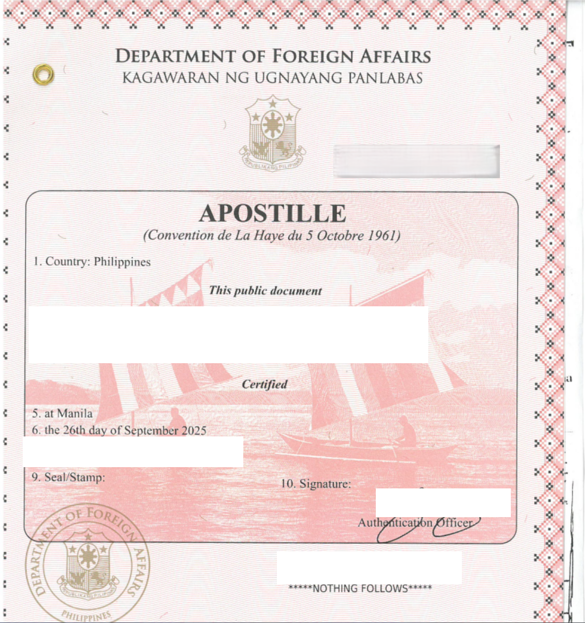 - PSA CENOMAR (한국말로 혼인 관계증명서) / 아포스티유 승인 후 제출