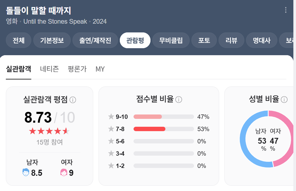 《돌들이 말할 때까지》는 큰 소리로 외치지 않는다. 하지만 그 조용한 침묵은 오히려 더 큰 메아리로 다가온다. 이 영화는 보는 이의 마음에 오래 남는 작품이며, 우리의 기억이 더는 침묵하지 않도록 만드는 강력한 시작점이다.