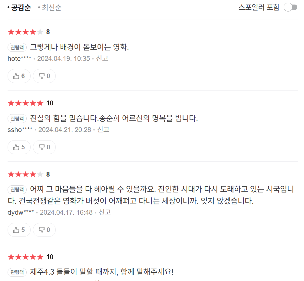 영화는 인터뷰나 자막에 의존하지 않고, 이미지의 힘으로 메시지를 전달한다. 이 방식은 관객에게 해석의 자유를 주지만, 동시에 더 큰 몰입을 요구한다. 그 침묵의 틈 사이에서 관객은 스스로의 역사와 감정을 투영하게 되고, 그로 인해 더 깊은 감동을 받게 된다.