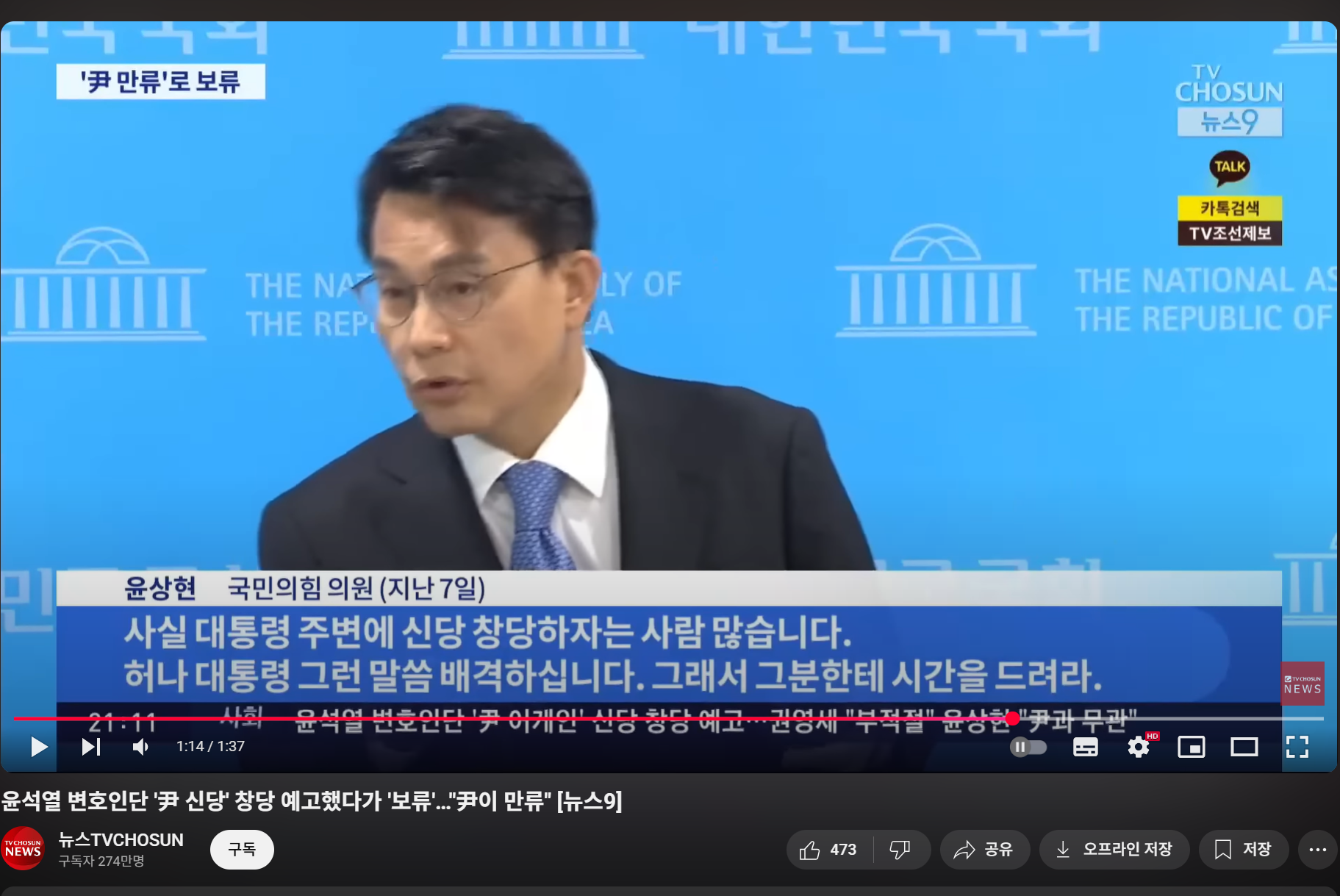 그는 이어 “국민의힘 내부 문제는 당이 풀어야 할 일이지, 대통령이 당에 직접 개입해 창당을 기획할 위치는 아니다”라며, 윤석열 대통령 역시 “정당 창당을 염두에 둔 바 없다고 알고 있다”고 덧붙였다.