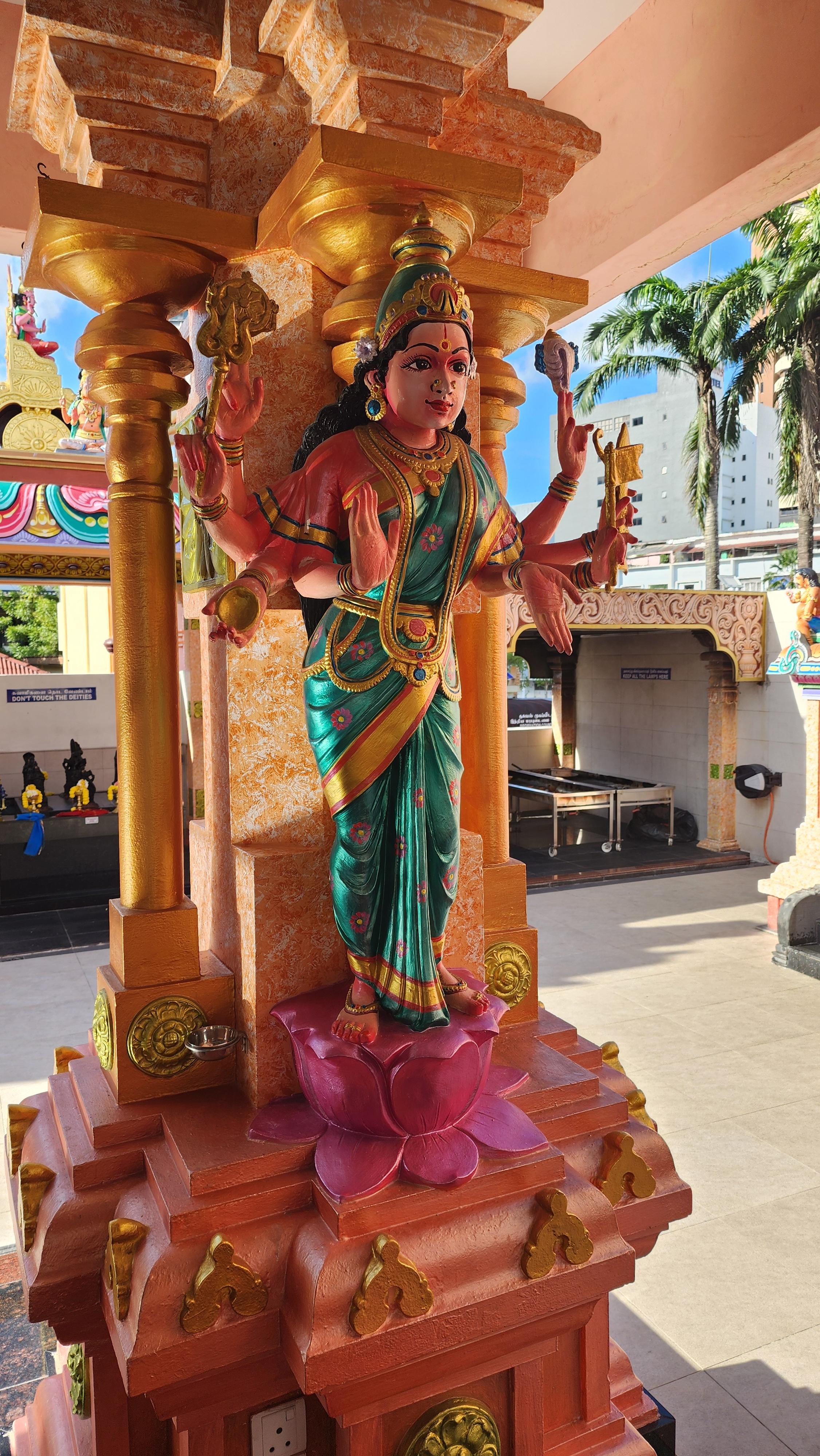 스리 마리암만 사원을 처음 마주하는 순간, 가장 눈에 띄는 것은 고푸람(Gopuram)이라 불리는 입구 탑이다. 이는 남인도식 힌두교 사원의 전통적인 양식으로, 수십 개의 신과 여신, 전설 속 인물들이 정교하게 새겨져 있다. 이 조각상들은 모두 다양한 상징과 이야기를 담고 있어, 건축 그 자체가 신화의 책과 같다.